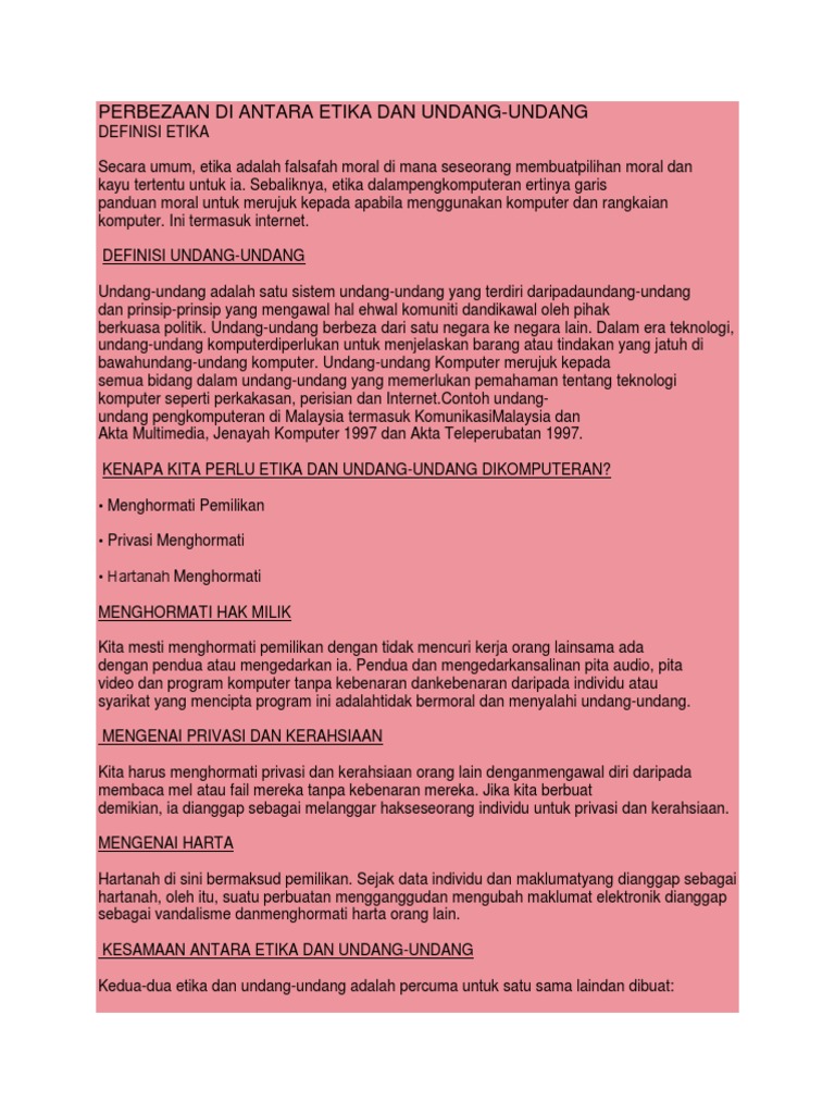 Perbezaan Di Antara Etika Dan Undang Pdf
